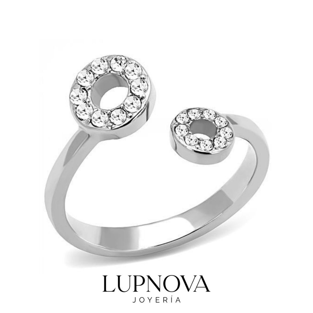 Descubre este anillo abierto de acero inoxidable con zirconia cúbica AAA, una pieza de diseño moderno con doble círculo y detalles brillantes que aportan elegancia y estilo. Perfecto para uso diario o para ocasiones especiales, este anillo combina versatilidad, brillo y un acabado sofisticado que eleva cualquier outfit. El anillo es abierto ajustable a tallas 6, 7 y 8.