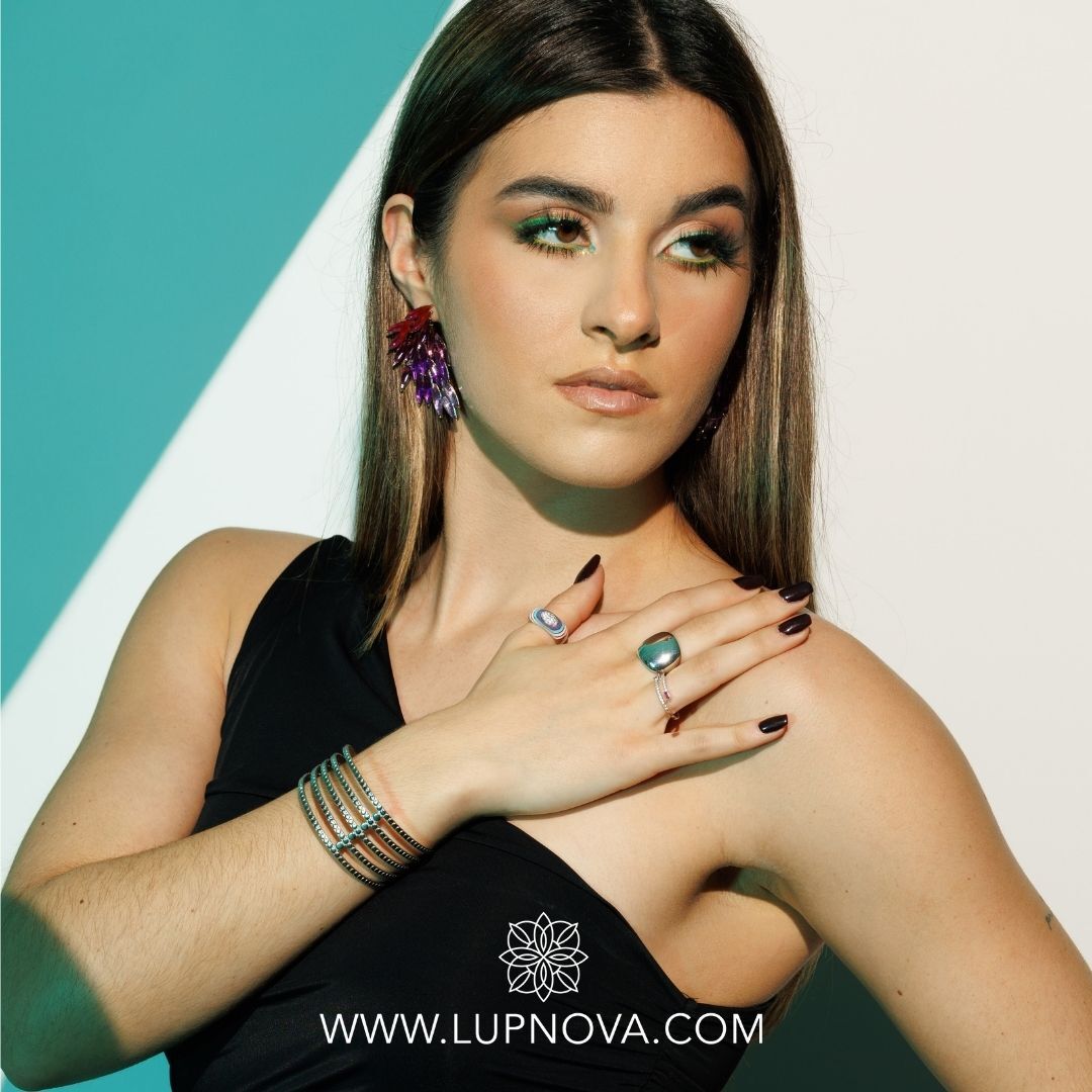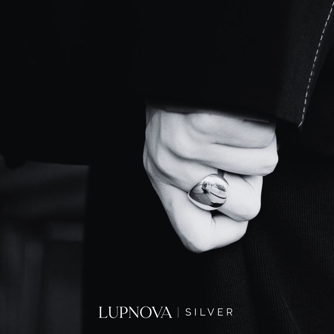 Anillo con forma de domo, medidas del tomo 2.2cm x 1.8cm. El anillo es abierto ajustable a tallas 6, 7 u 8. Material plata 925.