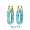 Aretes con diseño abstracto en esmalte. Ancho de 2.8cm, alto de 2.8cm. Peso de 17 gramos el par. Material acero inoxidable.