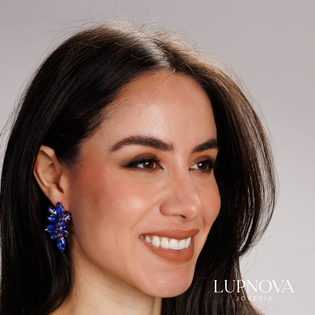 Aretes con iserción de cristales. Ancho de 2.3cm, alto de 4.2cm. Peso de 8gramos el par.