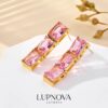 Aretes largos tipo drop con diseño de hojas y cristales rosados que crean un efecto de cascada súper elegante. Ideales para eventos, bodas o para elevar un look de noche con brillo delicado y femenino. Ancho de 1.6cm, alto de 8.2cm. Peso de 13 gramos el par.