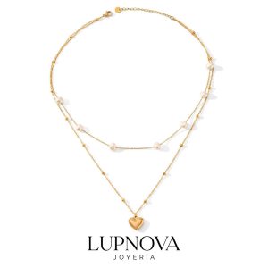 Cadena de acero inoxidable con dije de corazón de cristal violeta. Largo de 45 centímetros, más extensión de 5 centímetros.