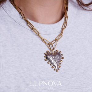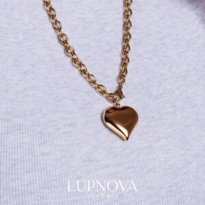 Cadena de acero inoxidable con dije de corazón. Disponible en acabado plateado y en baño de oro 18k. Un diseño moderno y versátil, perfecto para usar solo o combinar con otros collares. Ideal como regalo o detalle especial. La cadena tiene un largo de 40 centíemtros más una extensión de 5 centímetros.