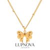 Cadena con dije de girasol. La cadena tiene un largo de 42cm más extensión de 6cm. El dije tiene un diáletro de 2.7cm. Material acero inoxidable con baño de oro 18k.