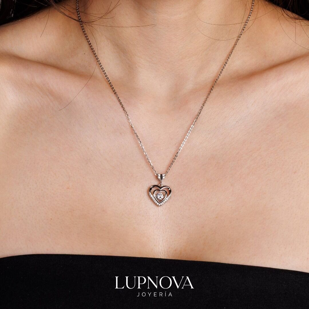 Cadena de plata 925 con dije de corazón y circonia brillante. Una joya elegante y romántica que resalta con su diseño sofisticado, ideal para uso diario o como regalo especial. El dije tiene un ancho de 14.5 milímetros y un alto de 20.4 milímetros. La cadena tiene un largo de 40 centímetros más una extensión de 5 centímetros.