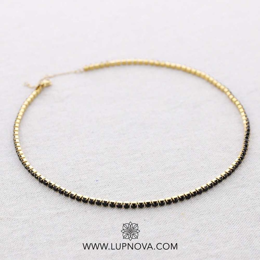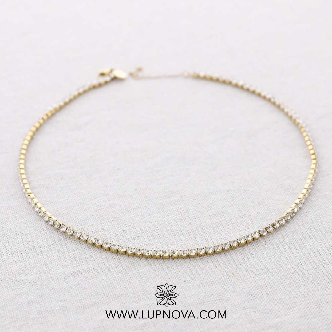 Este elegante choker presenta capas doradas con acentos brillantes, creando un diseño sofisticado y versátil. Perfecto para agregar un toque de glamour a cualquier atuendo, este choker es ideal tanto para el uso diario como para ocasiones especiales. El choker tiene un largo de 37 centímetros más una extensión de 5 centímetros. Material acero inoxidable.