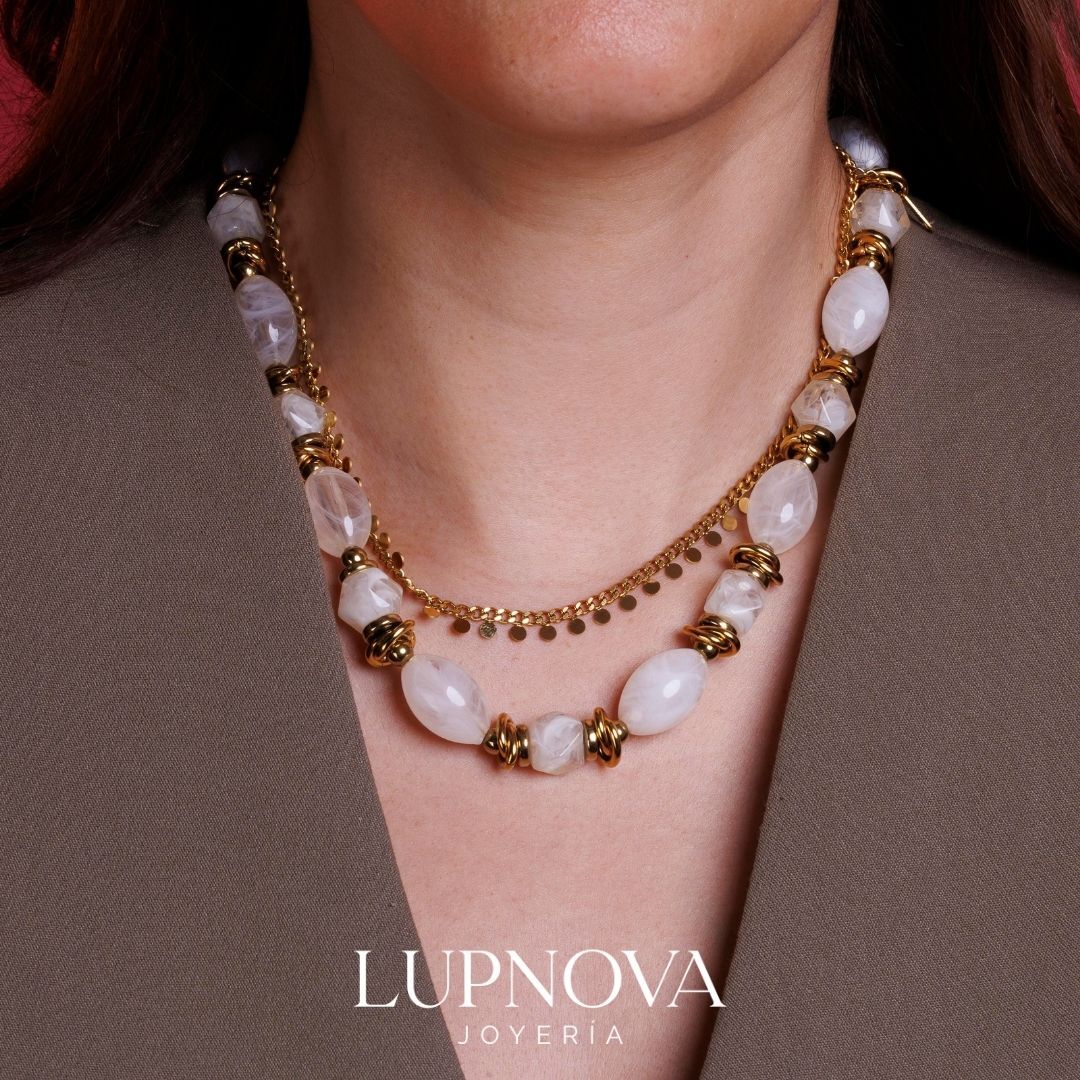 Collar de cuentas en tonos marfil y crema con detalles dorados, ideal para un look delicado y elegante. Elaborado en acero inoxidable, es resistente y perfecto para usar a diario o para combinar en capas con otros collares. Un básico versátil que ilumina cualquier outfit. El collar tiene un largo de 42cm más una extensión de 5cm.