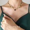 Collar con diseño de palmas, el collar tiene un largo de 40cm más extensión de 5cm. Material acero inoxidable con baño de oro 18k.