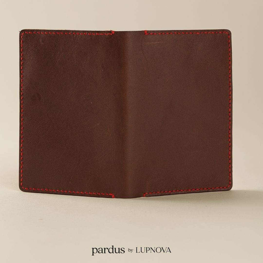 Costuras reforzadas a mano con hilo encerado en contraste, bordes pulidos y esquinas redondeadas para un look sofisticado y una durabilidad que supera a los porta pasaportes convencionales.