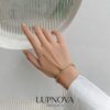 Pulsera con diseño de hilos entrelazados. Diámetro interno de 6cm. Ancho de 1.3 centímetros. La pulsera se puede ajustar. Material acero inoxidable.
