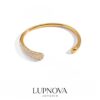 Pulsera con diseño minimalista, con una pieza central de incrustaciones de circonia lo cual la hace brillar. La pulsera tiene un broche magnético, lo cual la hace fácil de usar. Tiene un diámetro interno de 6 centímetros y es flexible, por lo que es muy cómoda. Material acero inoxidable.