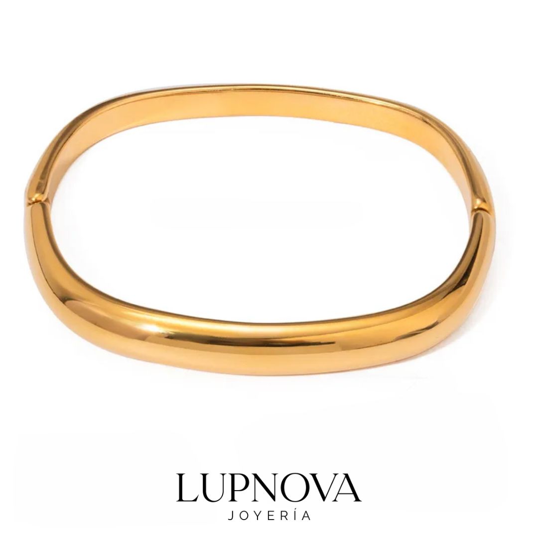 Pulsera tipo bangle de diseño minimalista y escultural, ideal para looks elegantes y modernos. Acabado pulido de brillo duradero. Perfecta para quienes buscan una pulsera rígida de acero inoxidable para mujer, resistente, versátil y fácil de combinar para uso diario o eventos. Diámetro interno de 6cm. Material acero inoxidable.