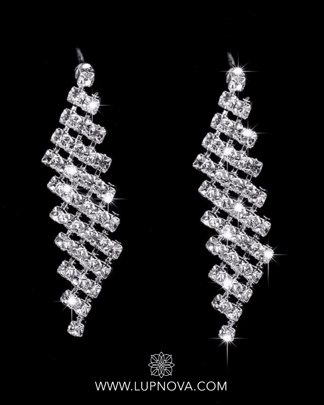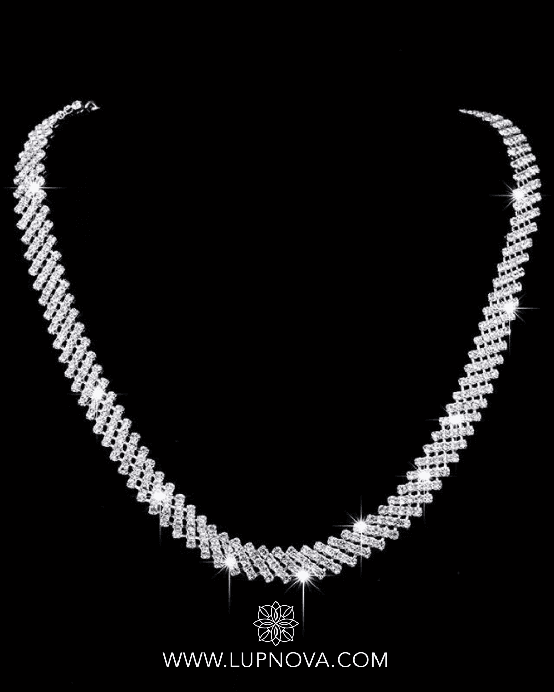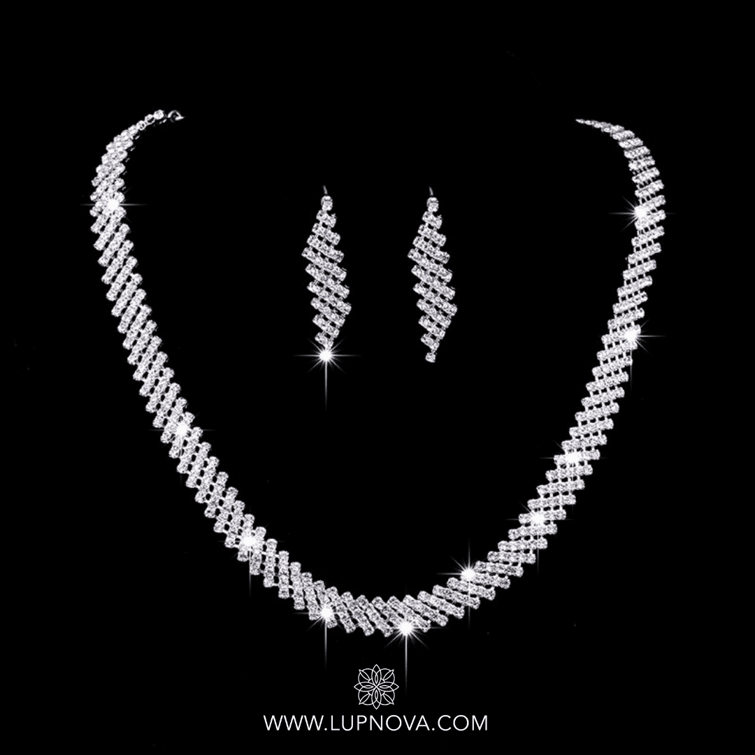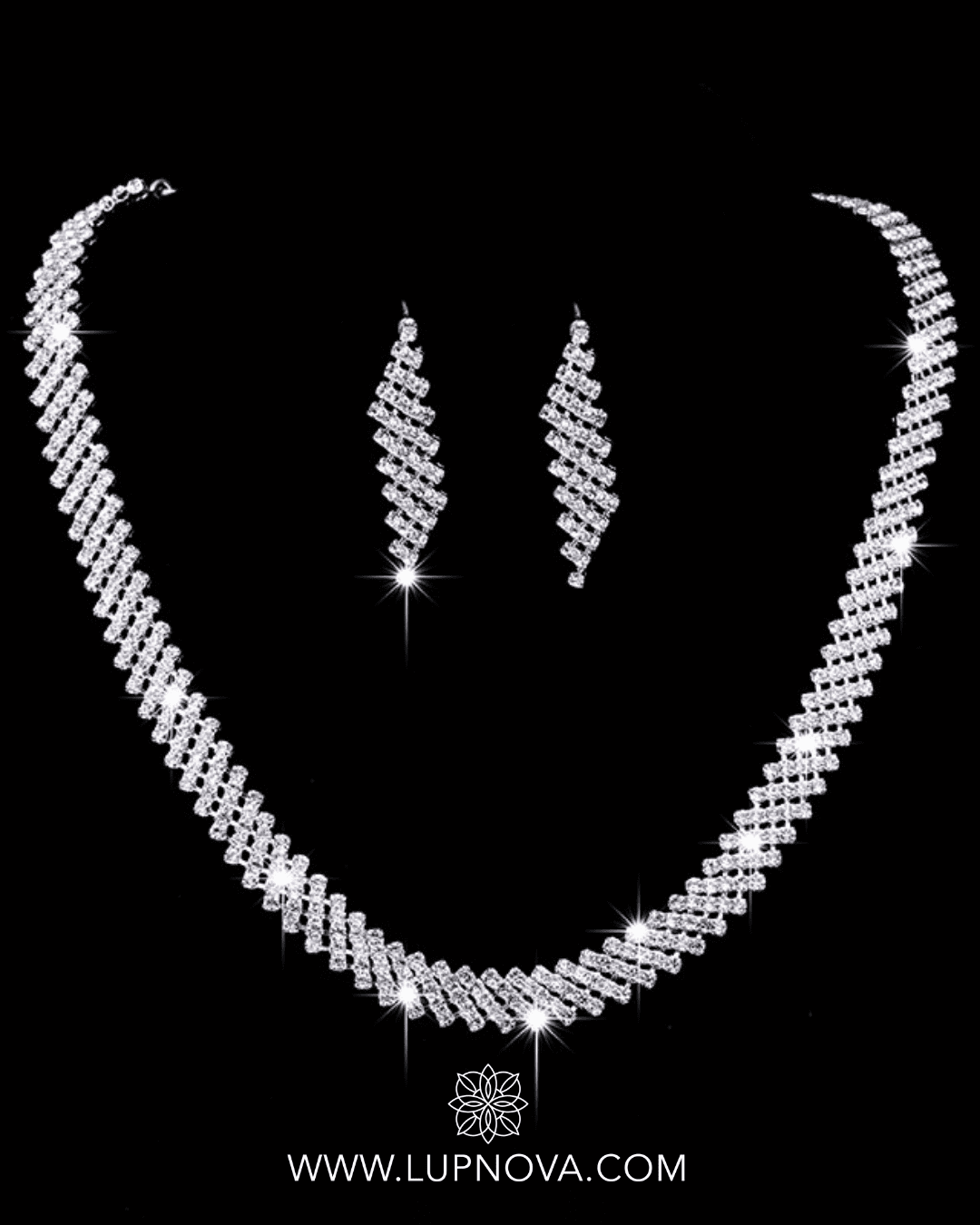Set para fiesta de collar y aretes. Los aretes tienen un ancho de 1cm y un largo de 3.5cm. El collar tiene un largo de 35cm, más una extensión de 15cm.